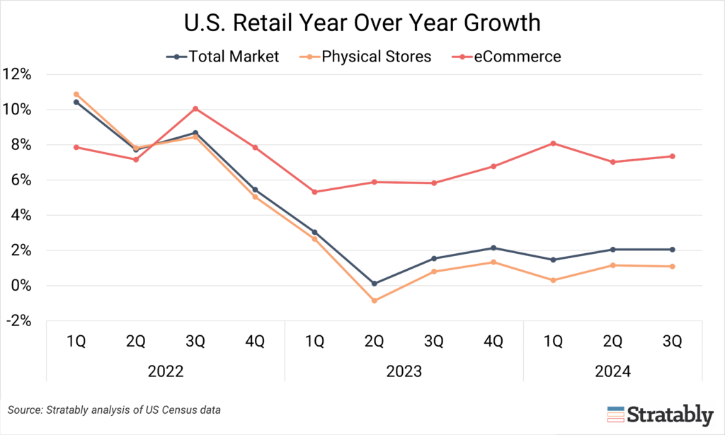 Read on for our analysis of how eCommerce stacked up to physical store growth this quarter.