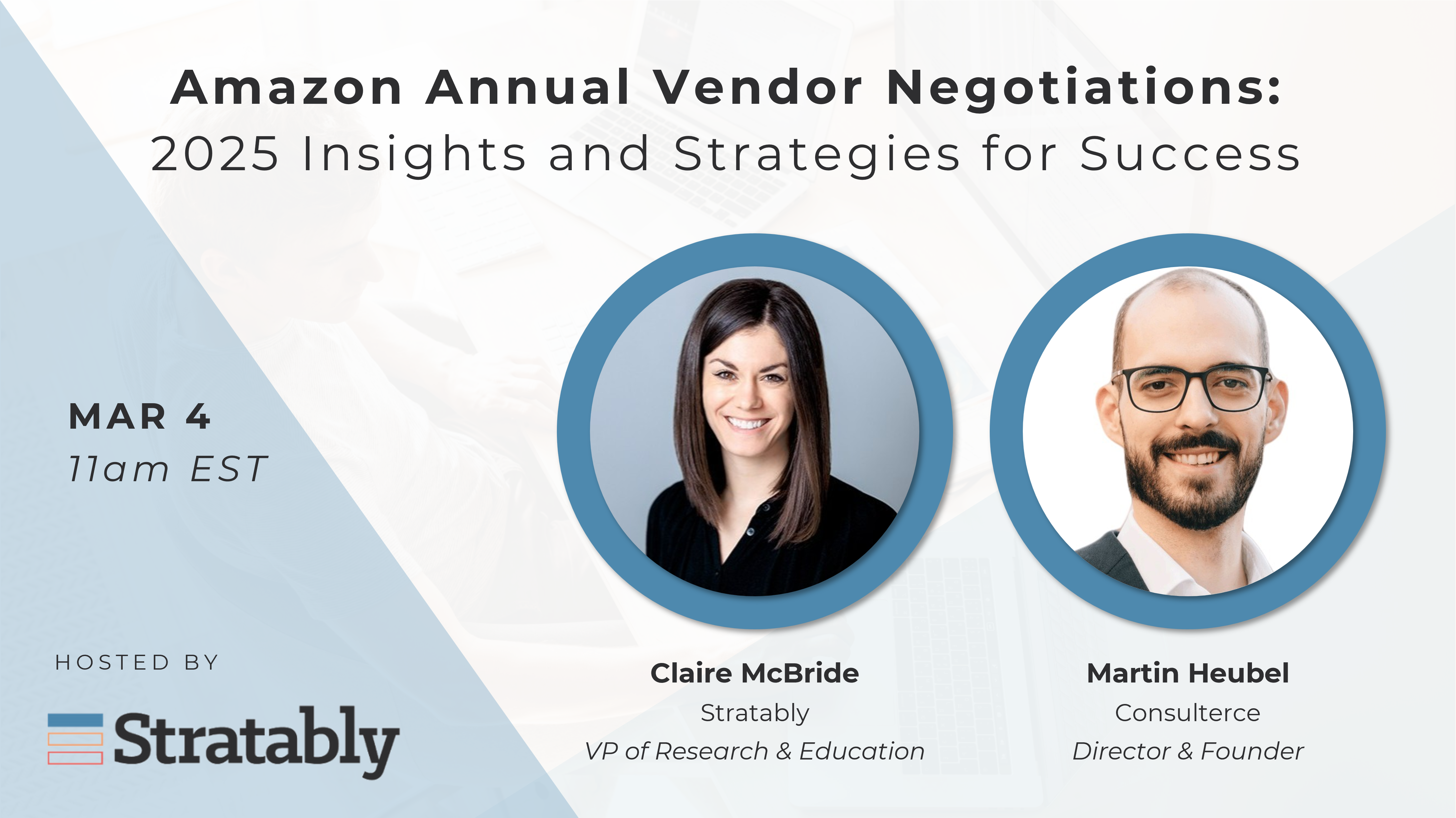 Stratably and Consulterce share critical benchmarking and strategic recommendations from their benchmark study on 2025 Amazon Annual Vendor Negotiations (AVNs).