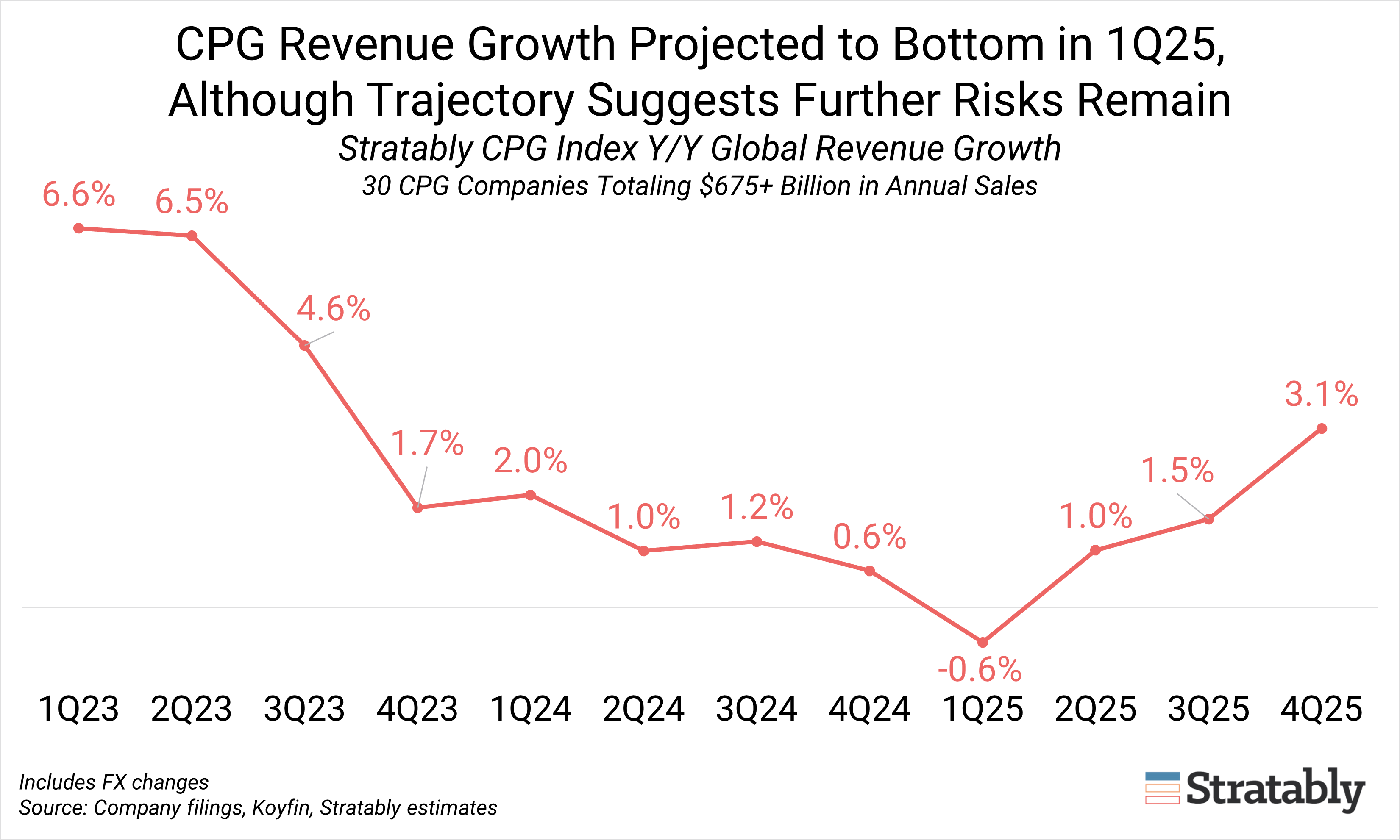 Compared to 90 days ago, the CPG industry outlook has softened. While some companies outperformed expectations, several reported slowing revenue growth and/or lowered guidance, reflecting a cautious stance amid continued macroeconomic uncertainty, mounting cost pressures, and increased consumer price sensitivity.