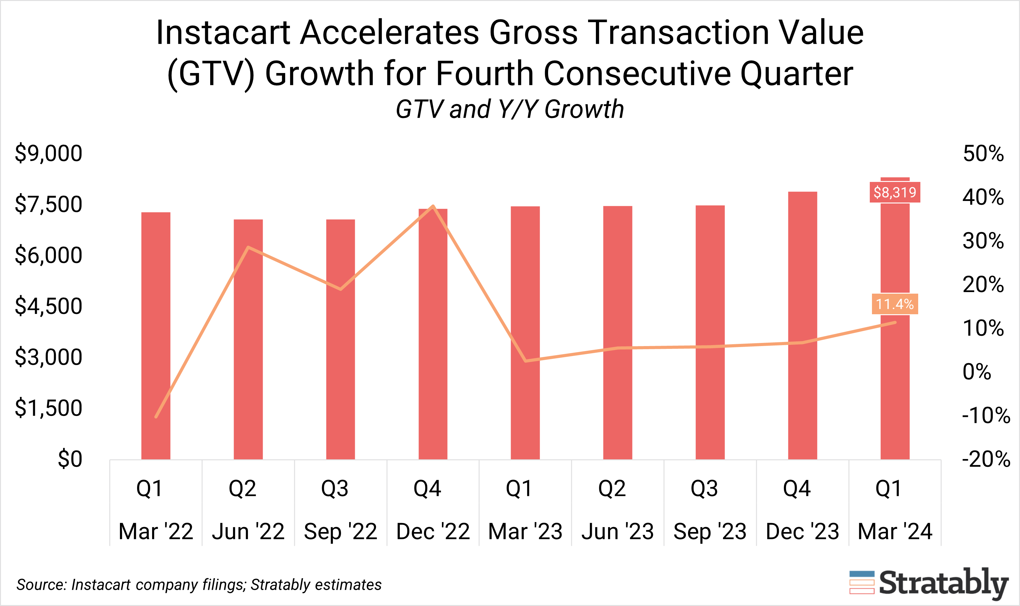 Instacart reported 1Q24 financial results yesterday, with gross transaction value (GTV), revenue, and profitability all coming in above expectations.
