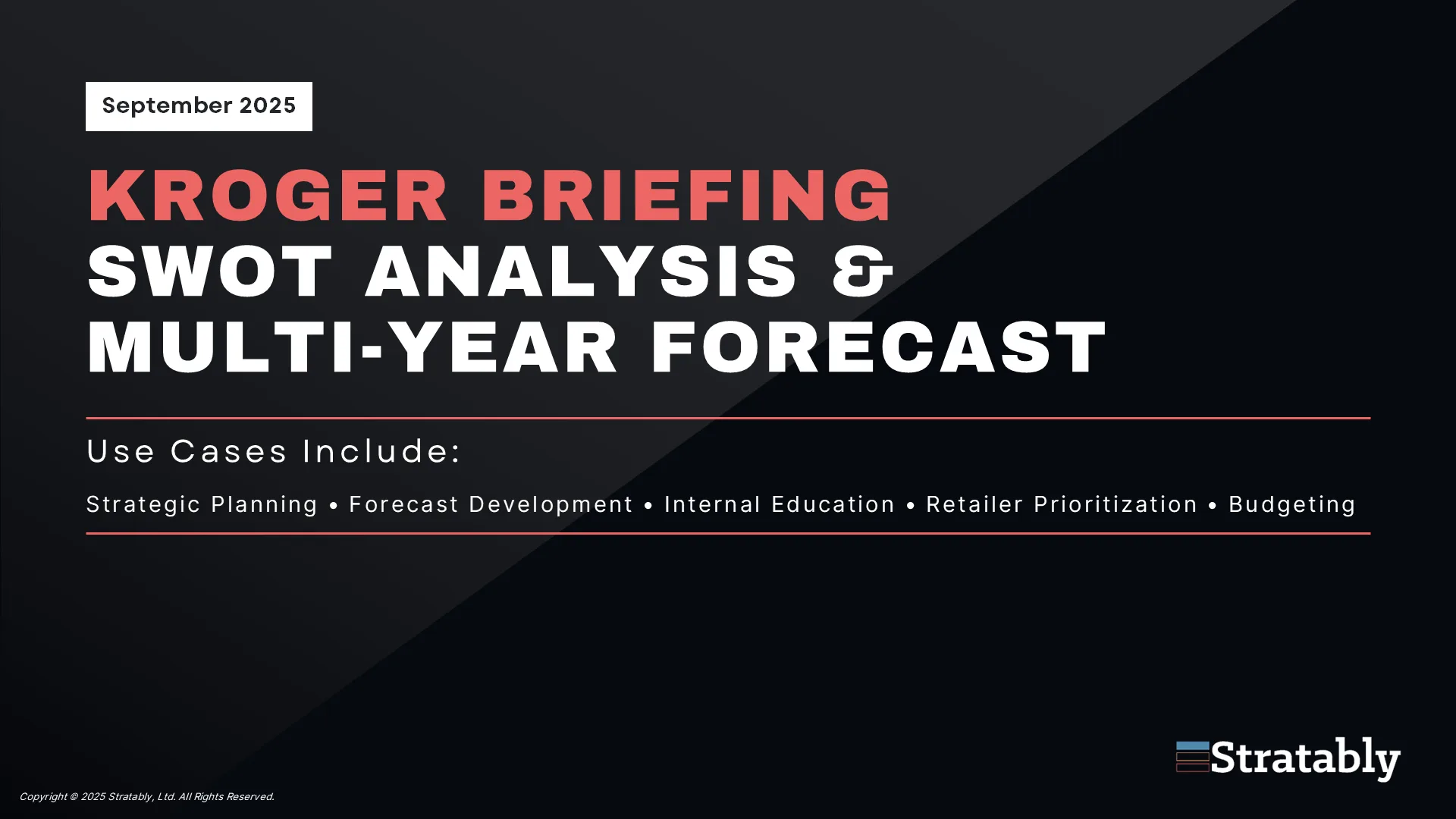 A concise, insight-heavy report covering Kroger’s annual and quarterly forecasts, a new SWOT analysis, and key “Areas to Watch” for consumer brands.