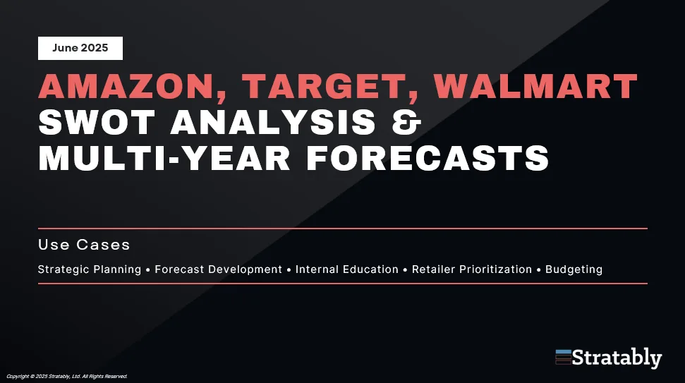 Stratablyโs new Amazon, Walmart, Target SWOT & Multi-Year Forecasts report is designed to help you do just that.