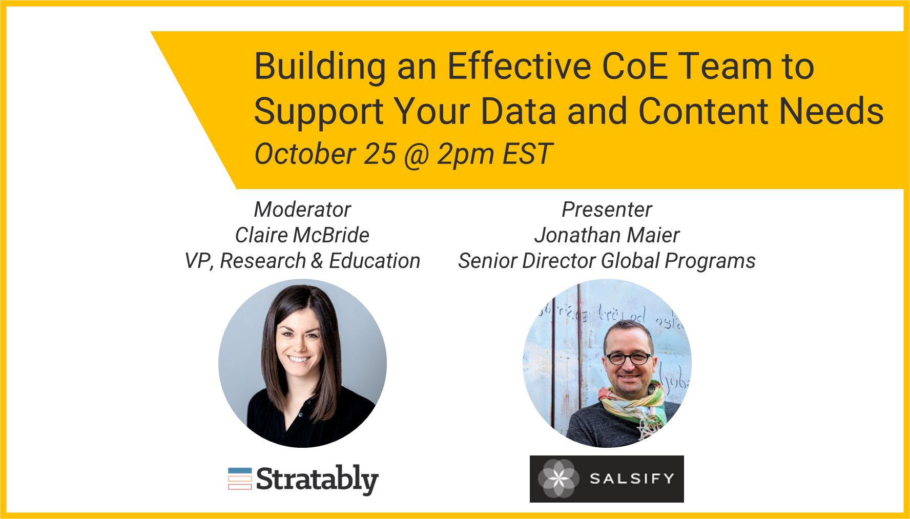 Stratably hosted Jonathan Maier from Salsify to share why a Center of Excellence (CoE) team can help scale your digital data operations effectively and efficiently โ and how to actually set up the CoE for success.